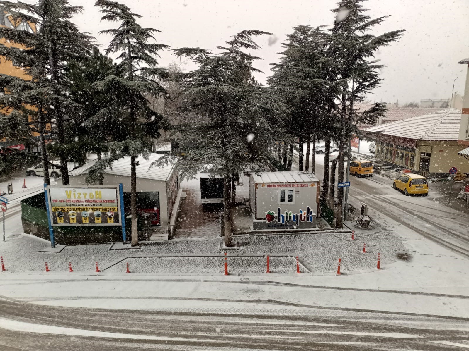 Öte yandan, Hüyük ve Derebucak ile çevre ilçelerde de etkili olan yağışla birlikte ilçe merkezleri beyaza büründü.