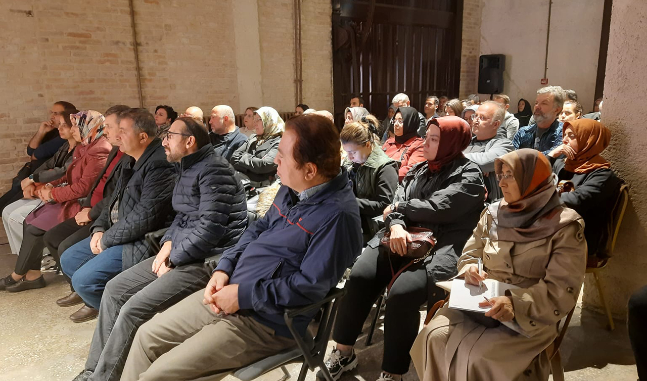 "Konya'da Manevî Hayat" başlıklı sunumuyla öğretmenlerle bir araya geldi. (Yunus Köroğlu)