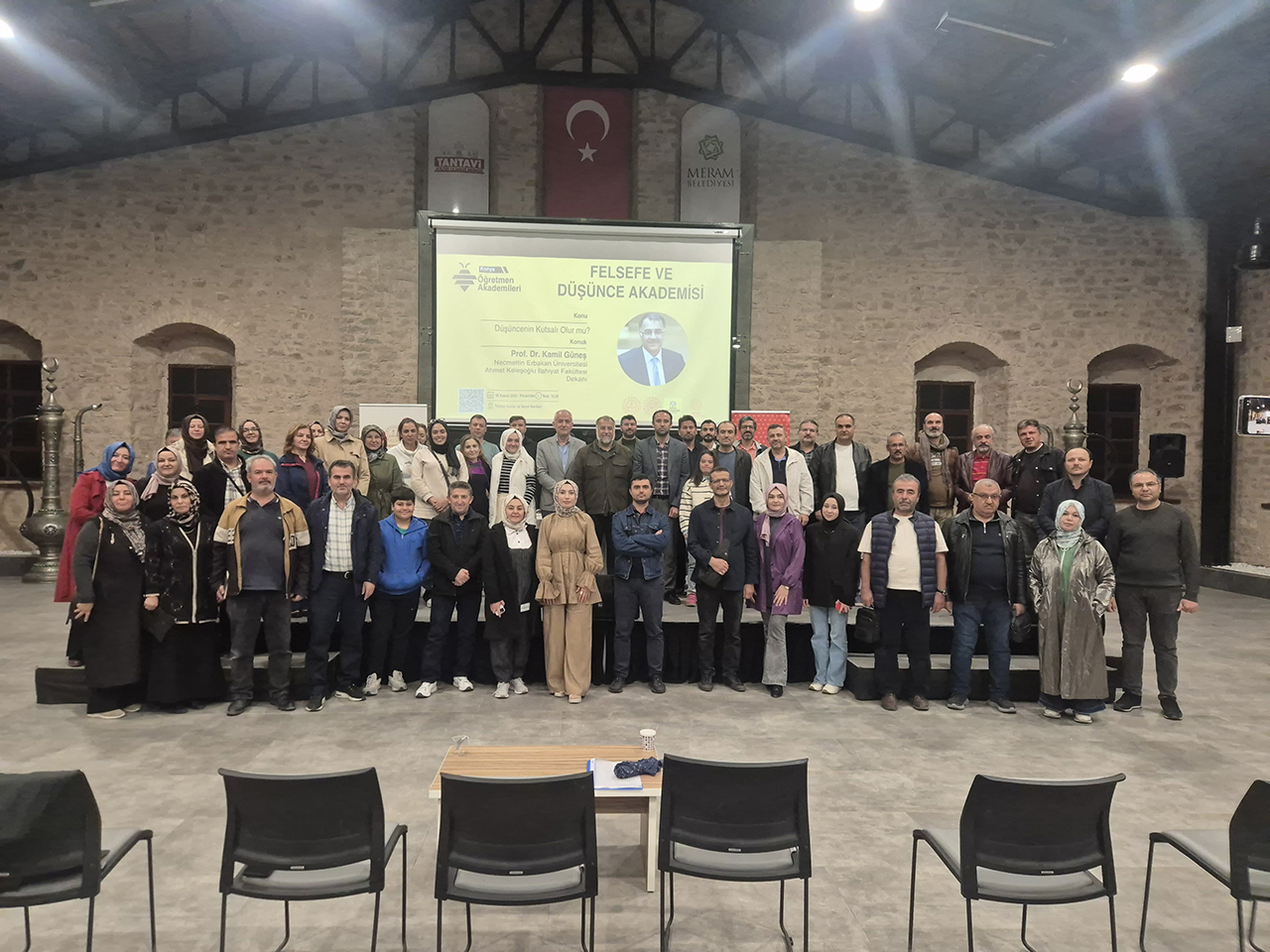 Felsefe ve Düşünce Akademisinde ise Necmettin Erbakan Üniversitesi Ahmet Keleşoğlu İlahiyat Fakültesi Dekanı Prof. Dr. Kamil Güneş, “Düşüncenin Kutsalı Olur mu?” başlıklı sunumuyla öğretmenlere düşünce, inanç ve özgürlük ekseninde ufuk açıcı değerlendirmelerde bulundu. (Veli Şengül)