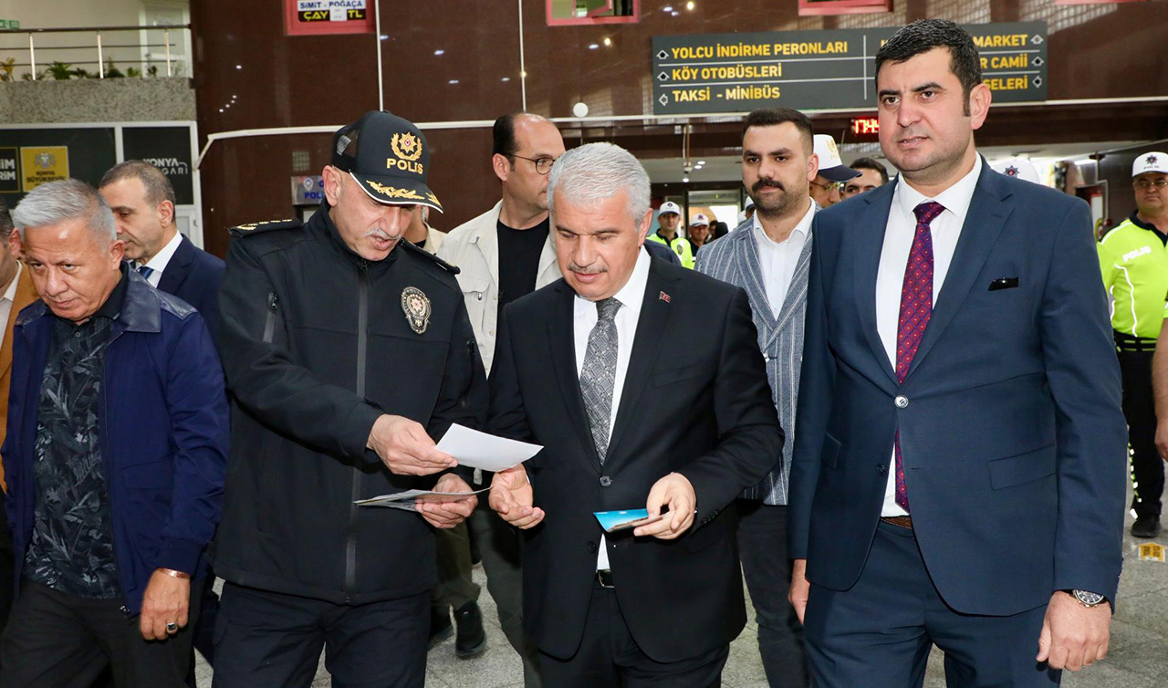 Kurban Bayramı öncesinde artan seyahat yoğunluğu nedeniyle Vali İbrahim Akın, Konya Şehirler Arası Otobüs Terminali’ni ziyaret ederek alınan trafik tedbirlerini yerinde inceledi.