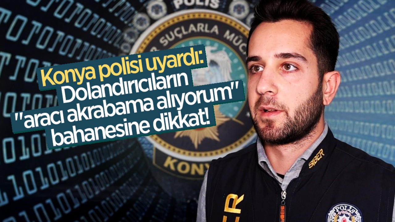 Haksız kazanç elde etmek isteyen dolandırıcılar araç alım satımında çeşitli yöntemler geliştiriyor. Dolandırıcılar ‘aracı akrabama alacağım' diye ikinci el araç satışında başkasına ait IBAN üzerinden ağlarına düşürdükleri kişilerin parasını alarak mağdur ediyor. Dolandırıcıların yöntemini anlatan Konya İl Emniyet Müdürlüğü Siber Suçlarla Mücadele Şube Müdürlüğünde görevli polis memuru Furkan Fulin vatandaşları uyarılarda bulundu.