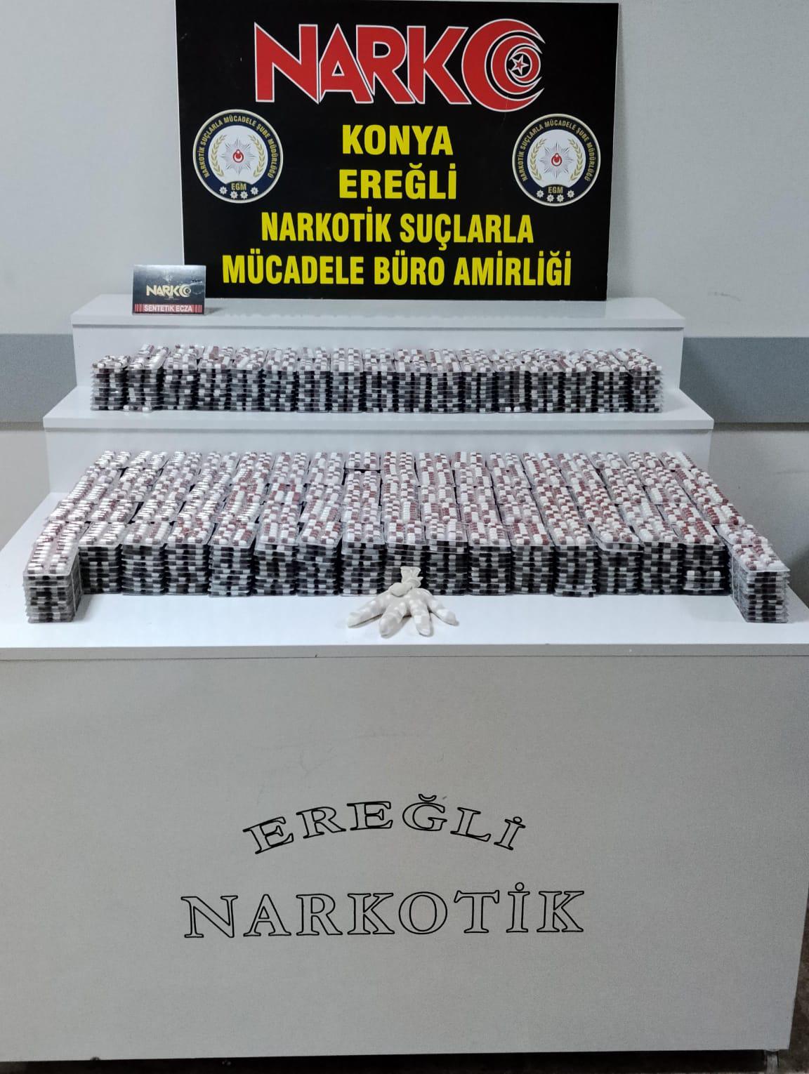 Konya'nın Ereğli ilçesinde düzenlenen uyuşturucu operasyonunda, Adana’dan getirildiği belirlenen 16 bin 541 sentetik hap ele geçirilirken 3 şüpheli de tutuklandı.