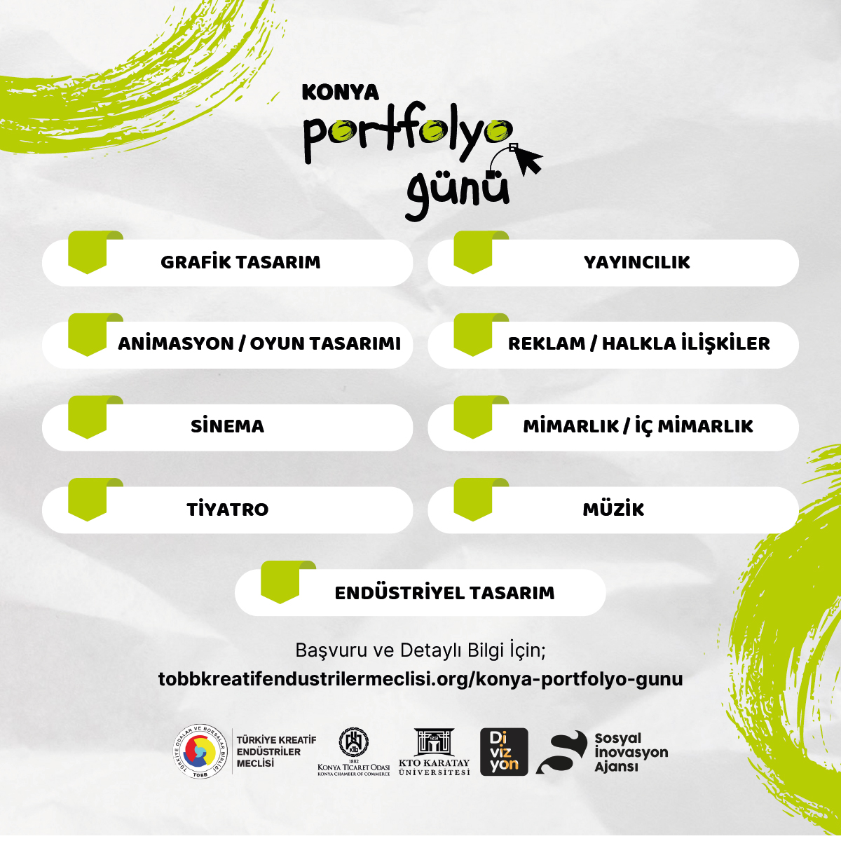 “Konya Portfolyo Günleri” hakkında detaylı bilgi almak ve etkinliğe katılmak isteyenler, https://tobbkreatifendustrilermeclisi.org/konya-portfolyo-gunu/ adresinden resmî web sitesini ziyaret edebilir.(Veli Şengül)
