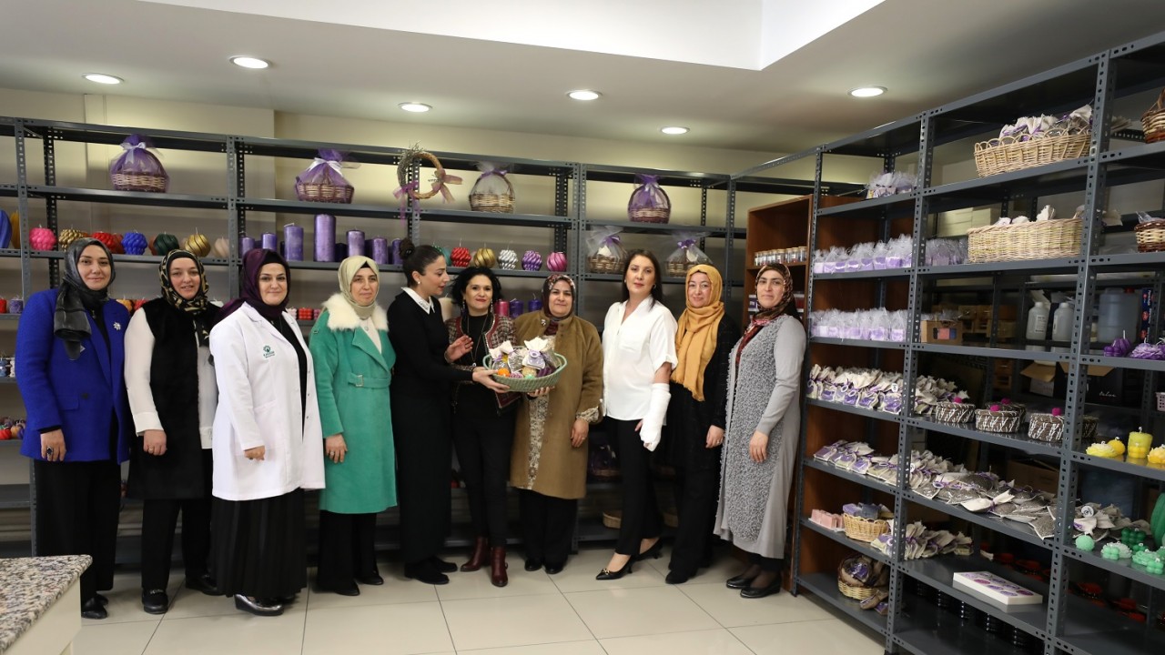 Konya protokolünün eşleri, Karatay Belediyesi Kent Konseyi Kadın Meclisi tarafından yürütülen “Atölye Karatay”ı ziyaret etti.