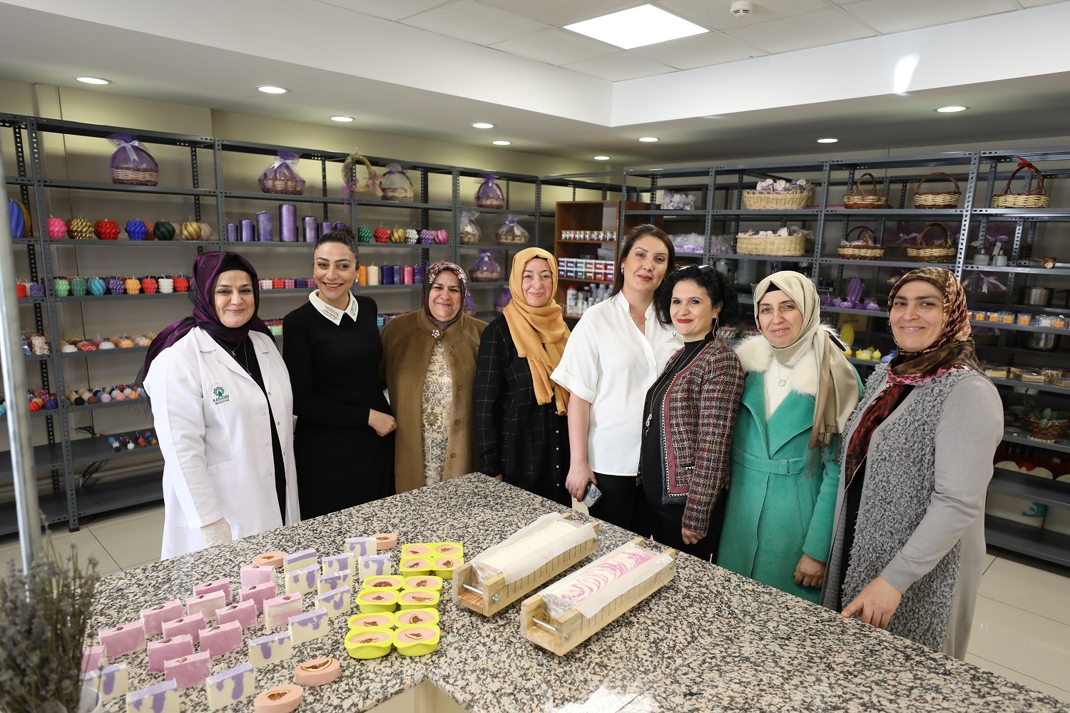 Konya protokolünün eşleri uygulama mutfağında kadınların sabun yapım çalışmalarını inceledi bilgi aldı. Yürütülen söz konusu çalışmalar dolayısıyla Karatay Belediye Başkanı Hasan Kılca ve Karatay Kent Konseyi Kadın Meclisi’ni tebrik eden protokol eşleri, “Atölye Karatay”ın kadınların sosyal ve ekonomik hayatına önemli katkı sağladığına vurgu yaptı.