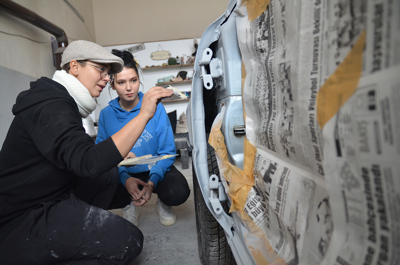 Bunun üzerine çocukken ilgi duyduğu baba mesleğini yapmaya karar veren Tuna, aynı zamanda aile dostu olan iki ustadan da yaklaşık 3 ay mesleğin inceliklerini öğrenerek, Karatay ilçesindeki sanayi sitesinde dört ay önce açtığı oto boyama iş yerini biri kız iki yeğeniyle işletmeye başladı.