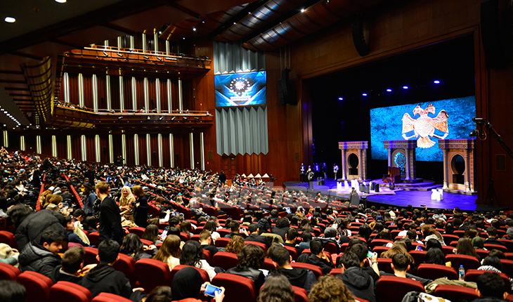 Cumhurbaşkanlığı’nın organize ettiği, Beştepe’deki Cumhurbaşkanlığı Külliyesi içerisinde bulunan Kongre ve Kültür Merkezi’nde sahnelenen “Nizamülmülk” oyunu lise öğrencileri tarafından ilgiyle takip edildi.
