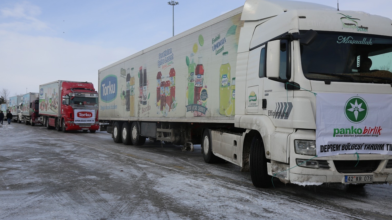 Ülke genelini sarsan, Kahramanmaraş merkezli 10 ili etkileyen 7.7 ve 7.6 şiddetindeki depremler sonrası Konya Şeker’den de yardım tırları yola çıktı.