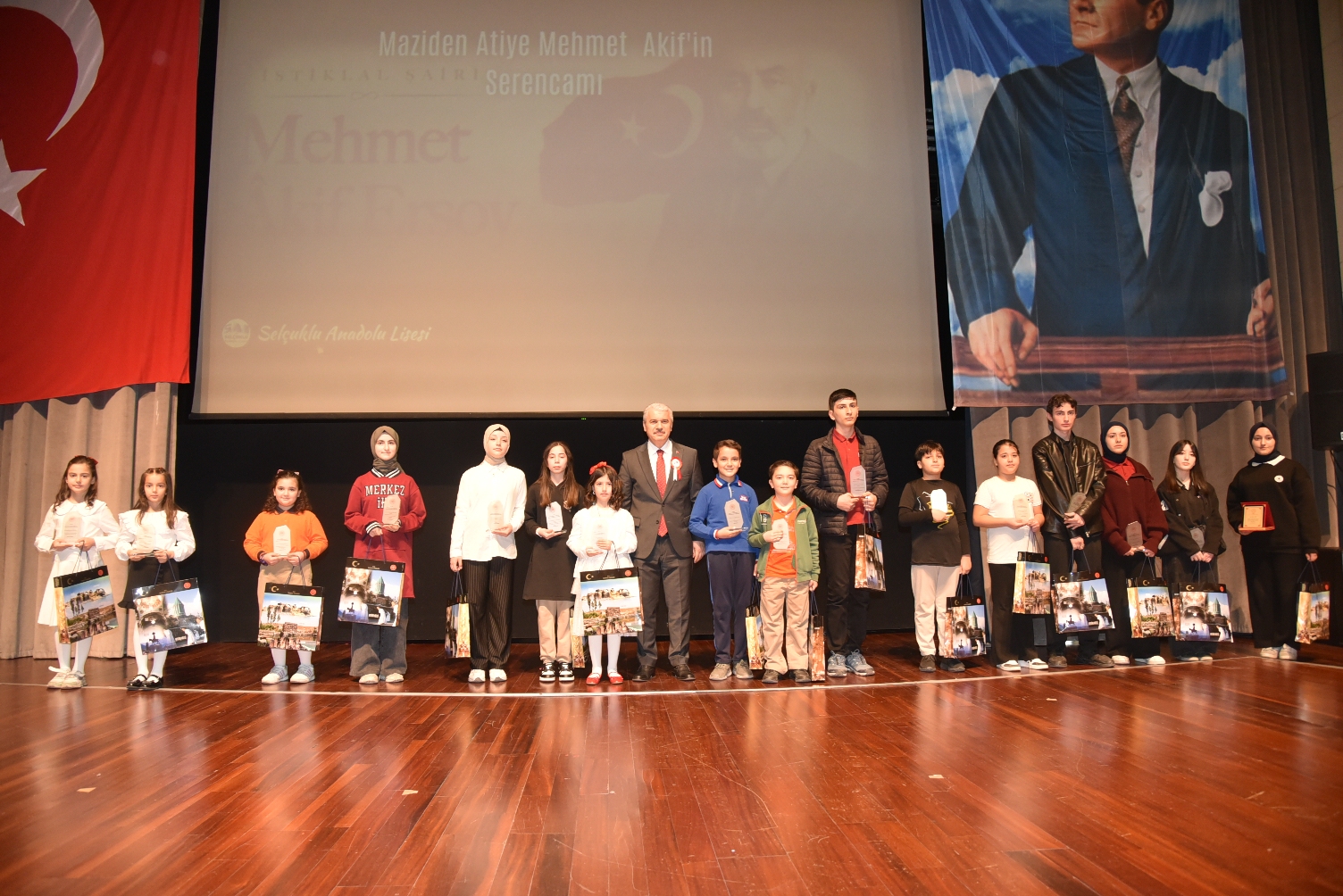 Konya Valisi İbrahim Akın, program kapsamında il genelinde düzenlenen resim, şiir, kompozisyon, İstiklal Marşı'nı güzel okuma ve “Dilimizin Zenginlikleri Projesi Mehmet Akif Ersoy ve Türkçe En İyi Afiş-Cümle” yarışmalarında dereceye giren öğrencilere ödüllerini takdim etti.