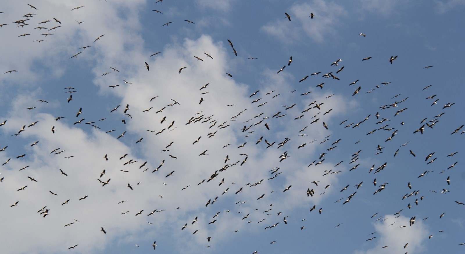 Yaz döneminin sonuna yaklaşılırken daha sıcak ülkelere göç etmek üzere yola çıkmaya başlayan leylek sürüleri Konya’nın Beyşehir ilçesinin semalarında görüntülendi.