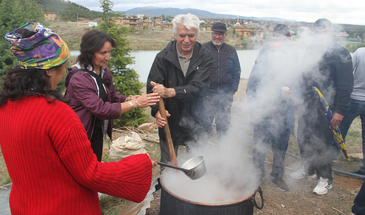 Heykeltraşlar Meral Kayısı ve Emrah Ateşli, Ressam Merve Kıyak, Yönetmen Atalay Taşdiken, köy sakinlerinden Figen Akkemik, İlknur Erk, Çiğdem Akkaya ve davetliler yöreye has bir yiyecek olan ve kazanlarda pişirilen "Mürdük Aşı"ndan gelen misafirlere ikram etti.
