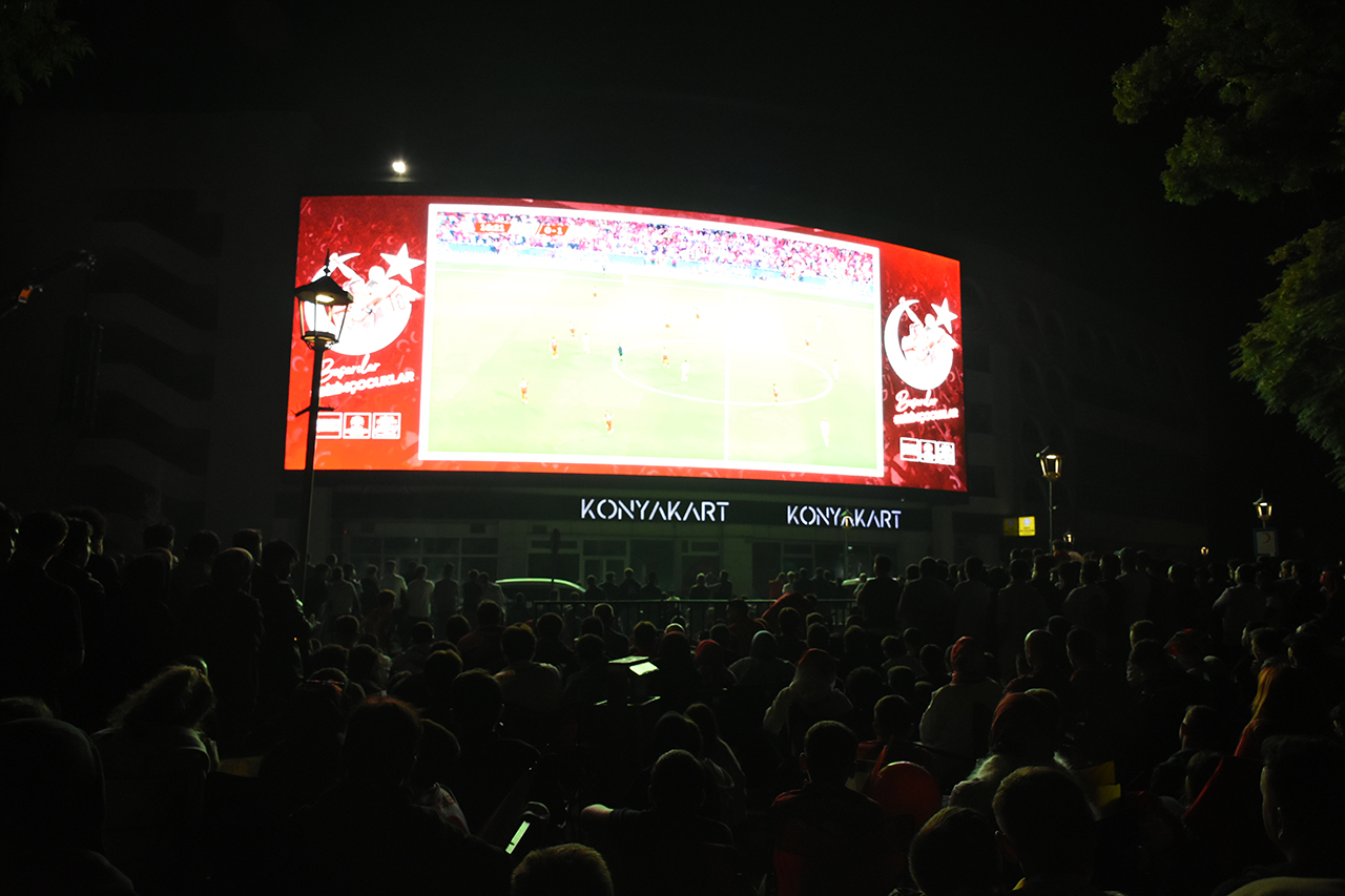Konya Büyükşehir Belediyesince, 2026 FIFA Dünya Kupası Avrupa Elemeleri E Grubu ikinci maçını izlemek isteyenler için, Konya Kent Meydanı'na 2 dev ekran kuruldu.