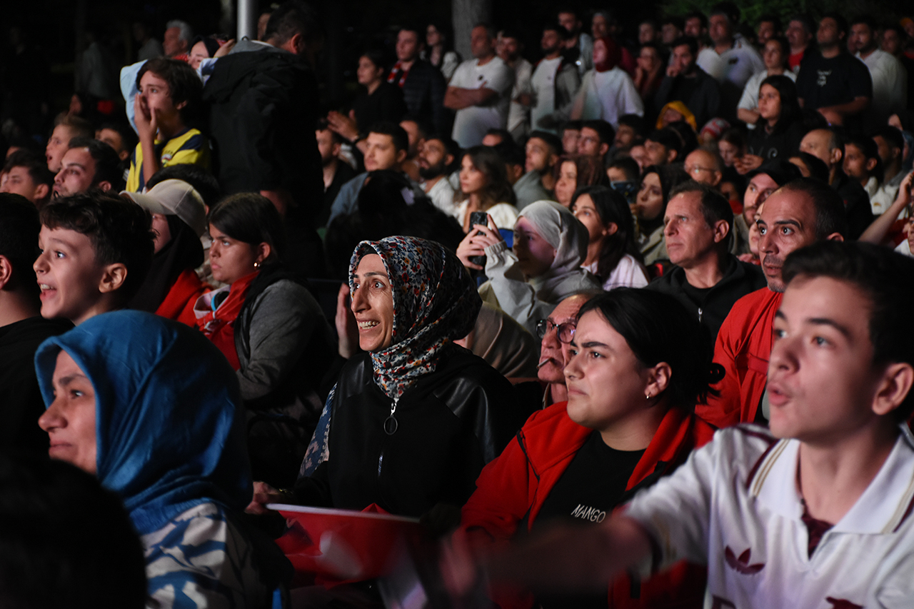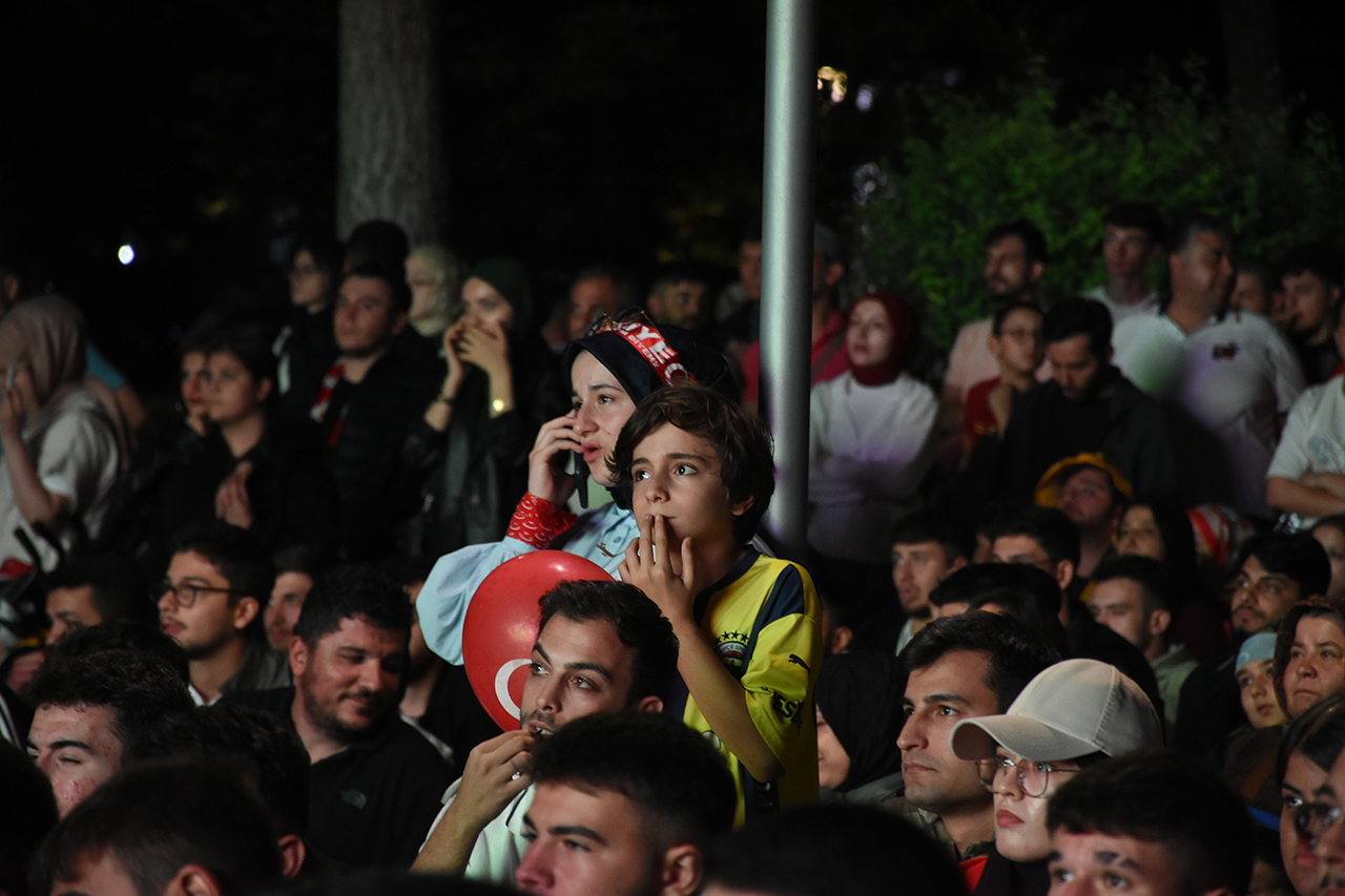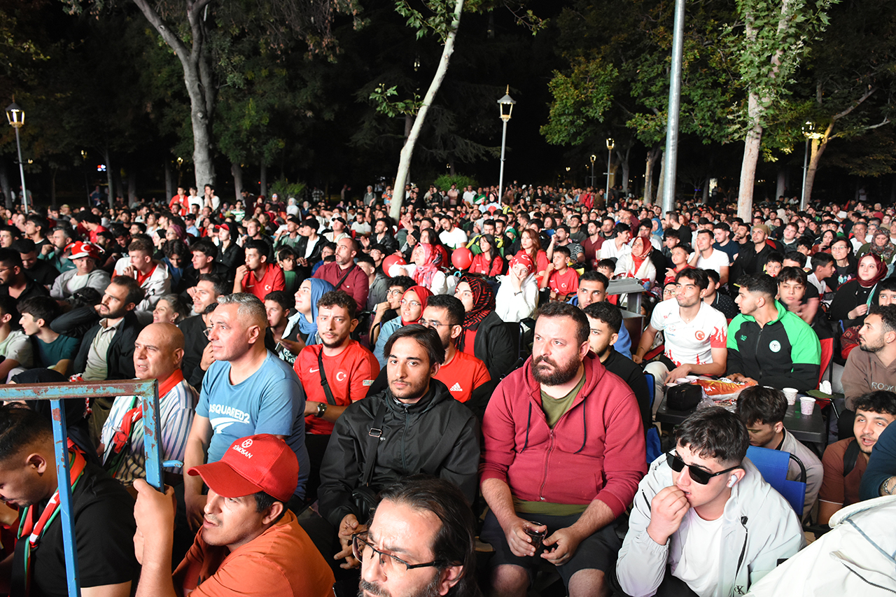 Konya'da vatandaşlar Türkiye-İspanya maçını meydanlara kurulan dev ekranlardan izledi.
