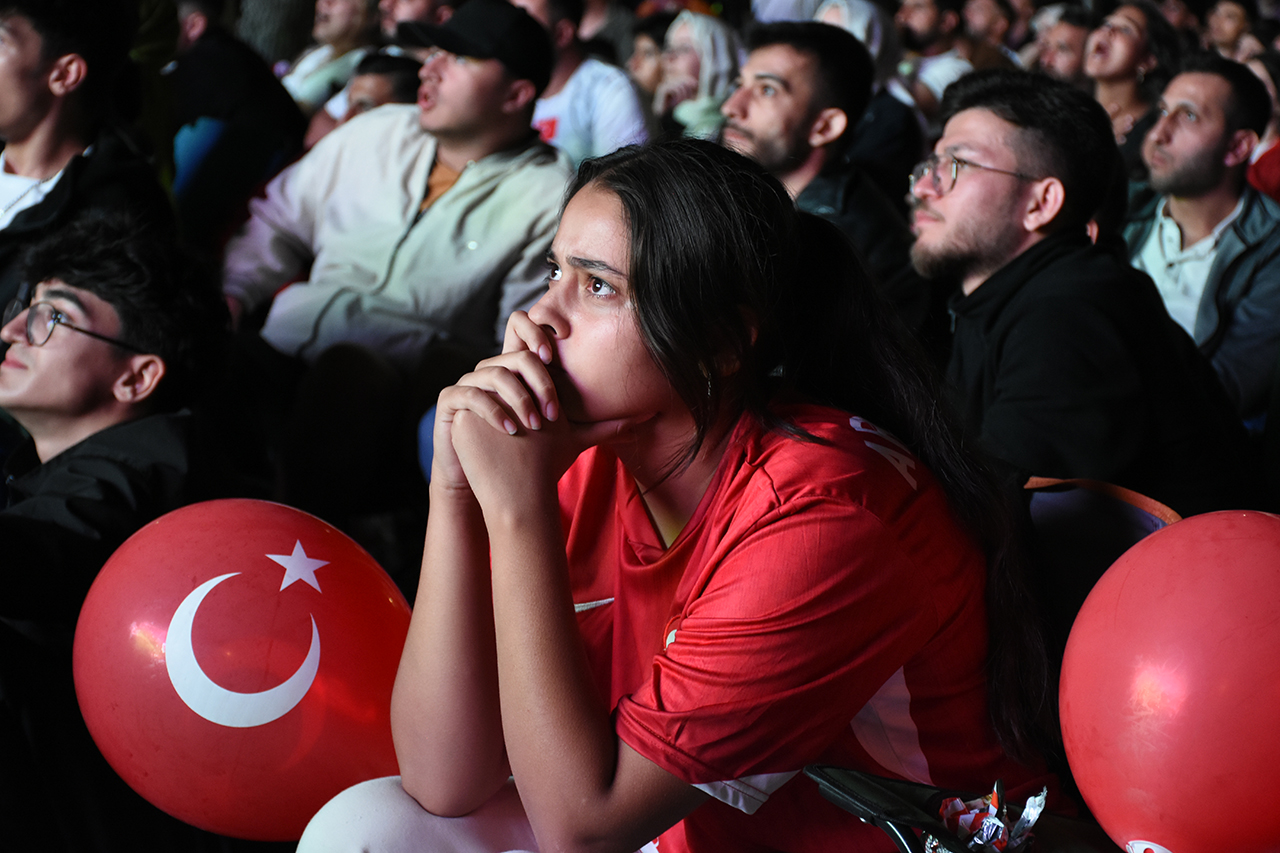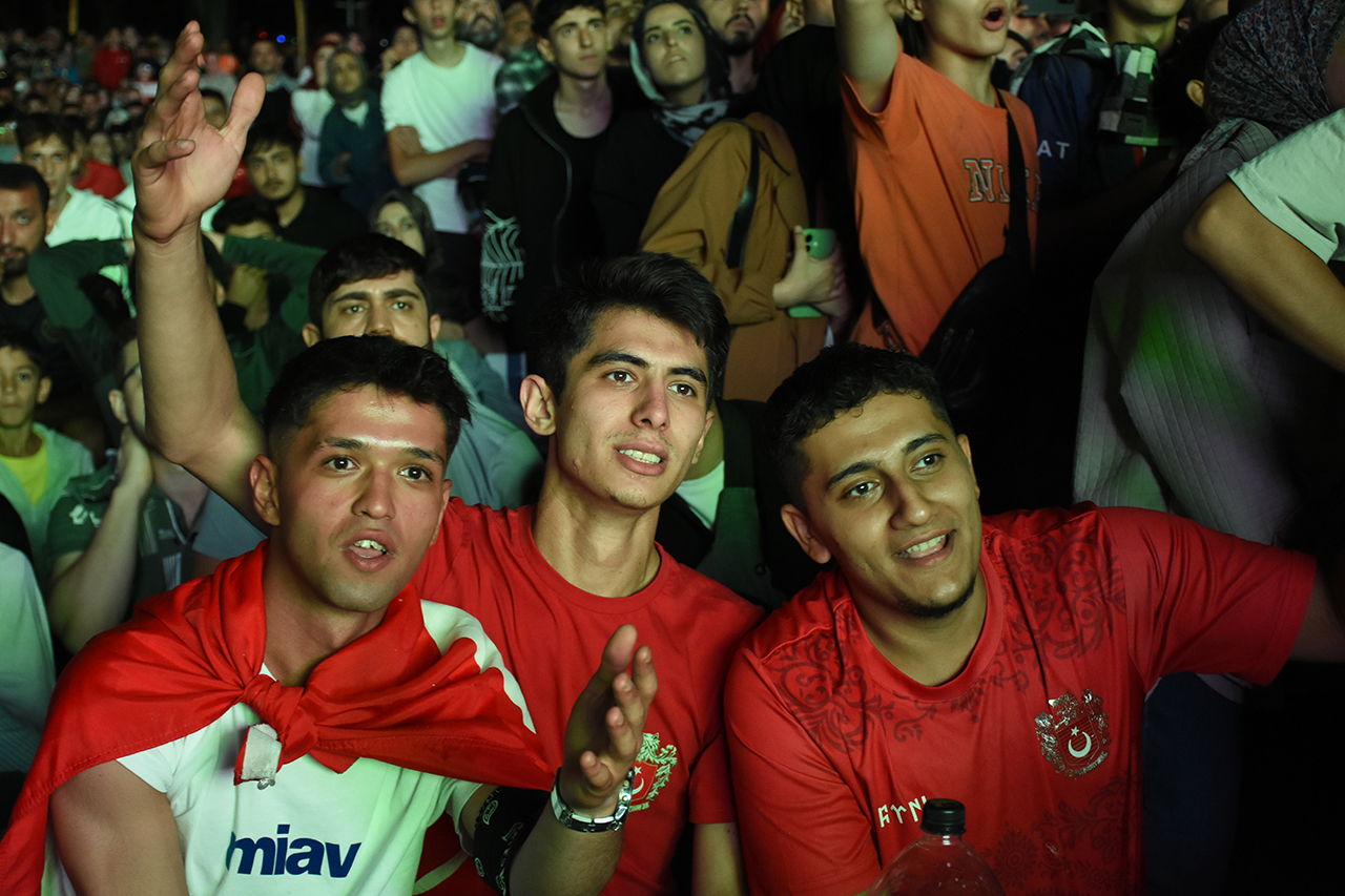 Zindankale Katlı Otoparkı ve Kalehan Ecadad Bahçesi'nde milli takım forması giyerek, ellerinde Türk bayraklarıyla karşılaşmayı seyreden vatandaşlar, maç boyunca alkışlarla milli takımı destekledi.