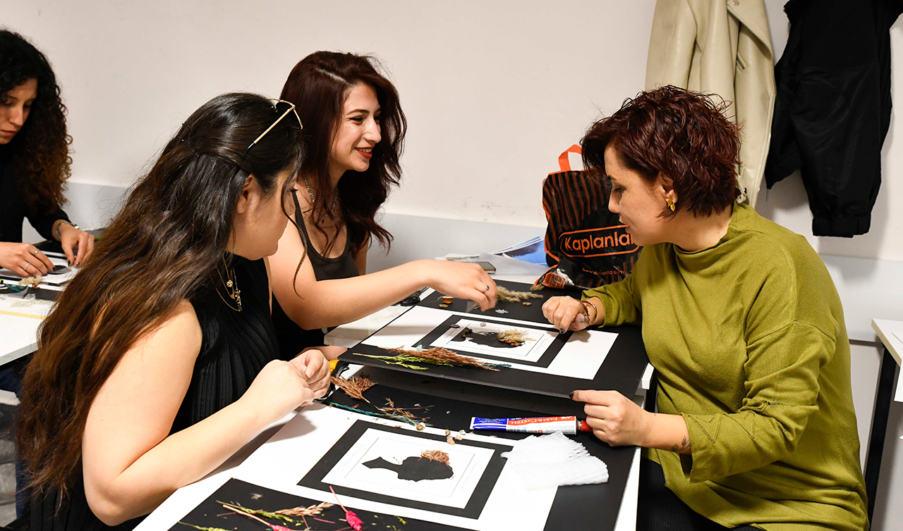“Dönüşümün Öncüsü Kadın” sloganıyla düzenlenen atölyede, toplumda görünmez hale gelen kadın siluetinin, taşıdığı materyaller aracılığıyla görünür kılınmasına dikkat çekildi. Atölye kapsamında, kadının dönüşüm gücünü vurgulayan sanat eserleri üretildi.