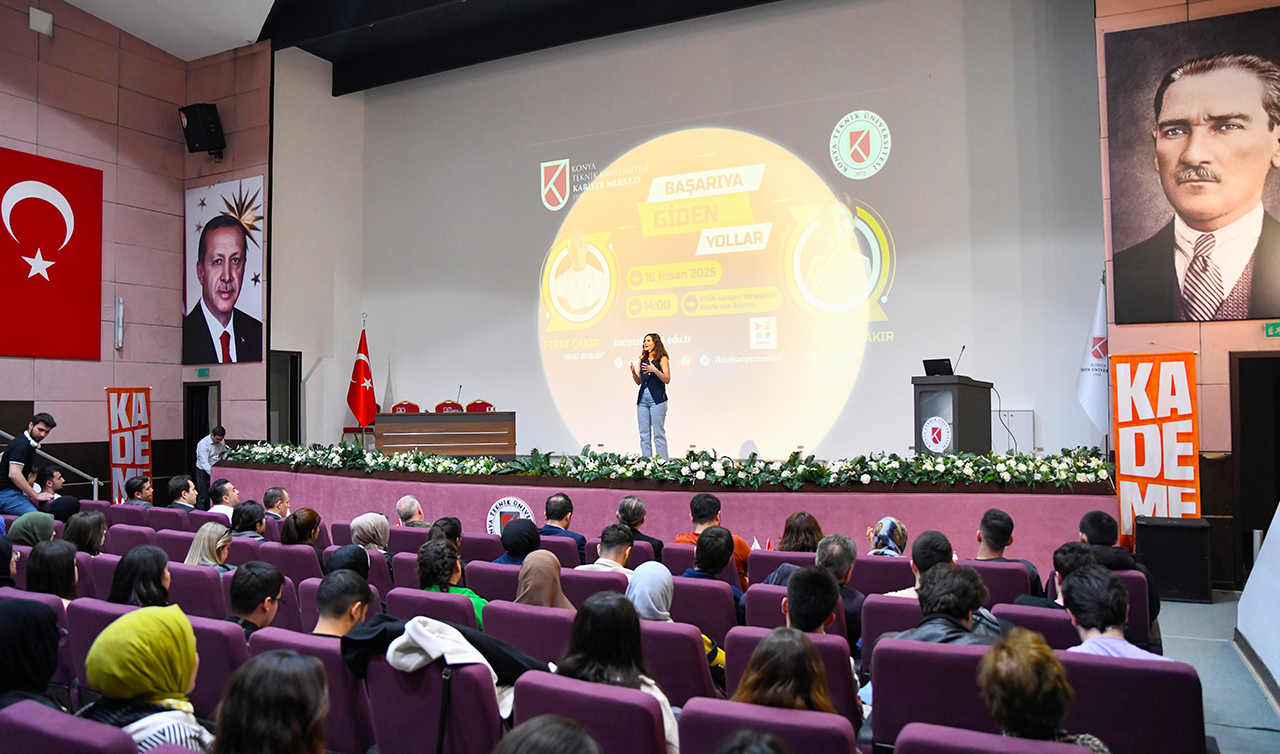 Konya Teknik Üniversitesi Kariyer Merkezi tarafından düzenlenen “Başarıya Giden Yollar” etkinliği, öğrencilerle ilham verici yaşam öykülerini buluşturdu. Etkinlikte, kişisel gelişim alanında tanınan iki önemli isim Fırat Çakır ve Özlem Çakır, katılımcılara unutulmaz bir deneyim yaşattı.