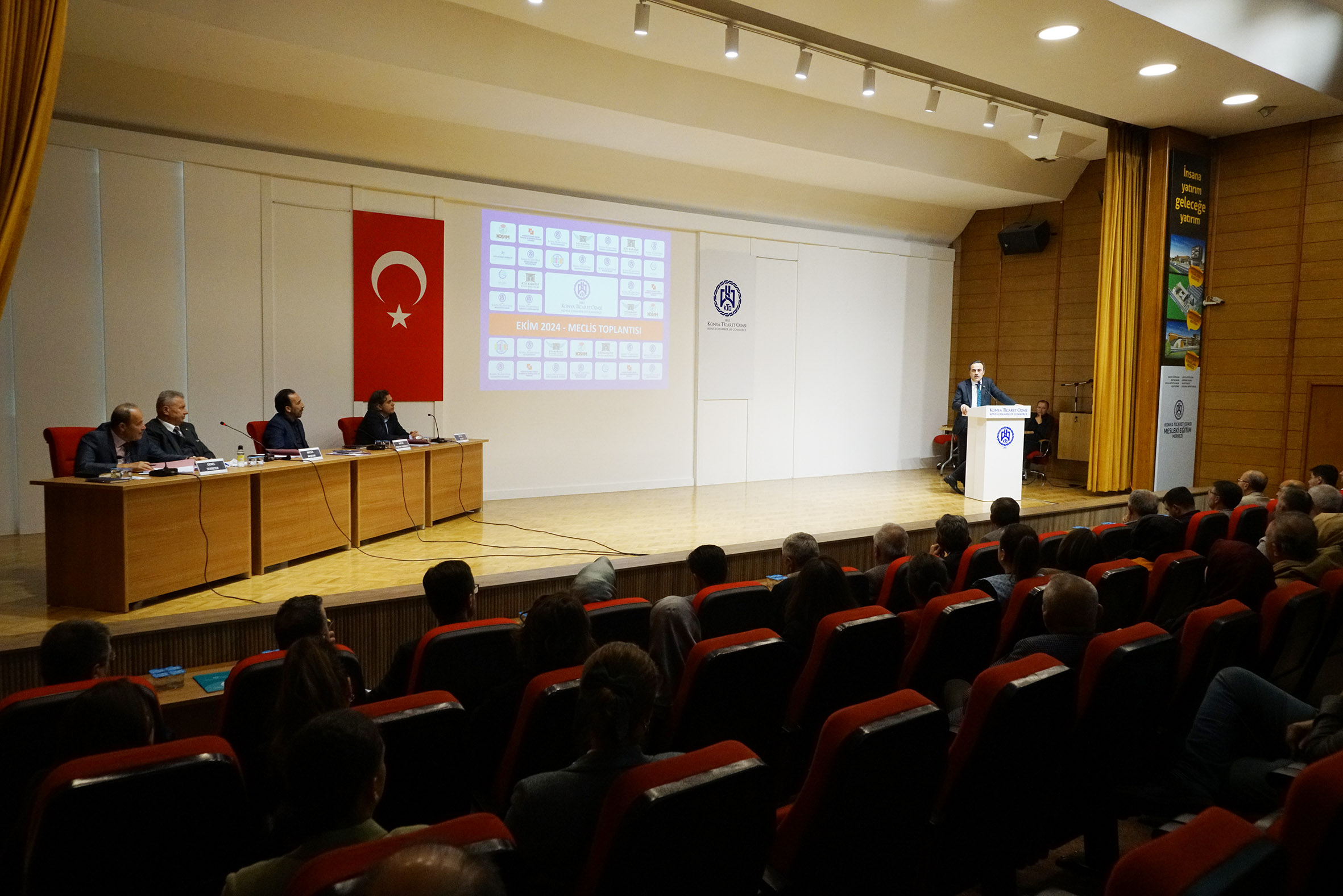 Konya Ticaret Odası'nın (KTO) Ekim Ayı Meclis Toplantısı gerçekleştirildi. Konya Kadın Girişimciler Kurulu Başkanı Meryem Betül Özkardeş, Genç Girişimciler Kurulu Başkanı Erhan Öncan ve AKITEK Müdürü Saim Ervural’ın konuk olduğu toplantıda KTOTAM Divan Kurulu Başkanı Ali Deresoy Meclis gündeminde söz aldı. KTO Başkanı Selçuk Öztürk, hain terör örgütü tarafından gerçekleştirilen TUSAŞ saldırısının başta savunma sanayi olmak üzere stratejik alanlarda yerli ve milli üretimin önemini bir kez daha ortaya koyduğunu ifade ettiği konuşmasında Cumhuriyetin kuruluşunun 101. yıl dönümünü kutladı.