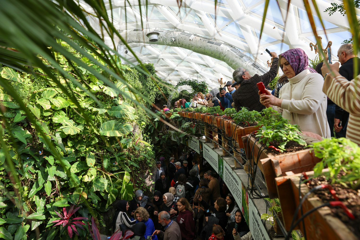 Yaz-kış 28 derece sıcaklık ve yüzde 80 nem değerinde bulunan bahçe 98 farklı türe ait bitki ile 60 farklı tür kelebeğe doğal yaşam alanı sunuyor.