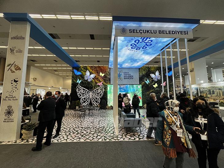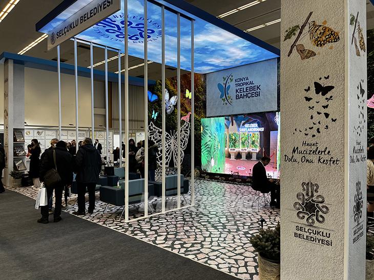 Dünyanın ve Türkiye'nin farklı noktalarından fuarı gezmek için gelen binlerce ziyaretçinin buluşma noktası olan fuarda Kadim Selçuklu Medeniyeti başta olmak üzere Selçuklu Belediyesi tarafından Konya’ya kazandırılan Tropikal Kelebek Bahçesi’nin tanıtımı yapılıyor.