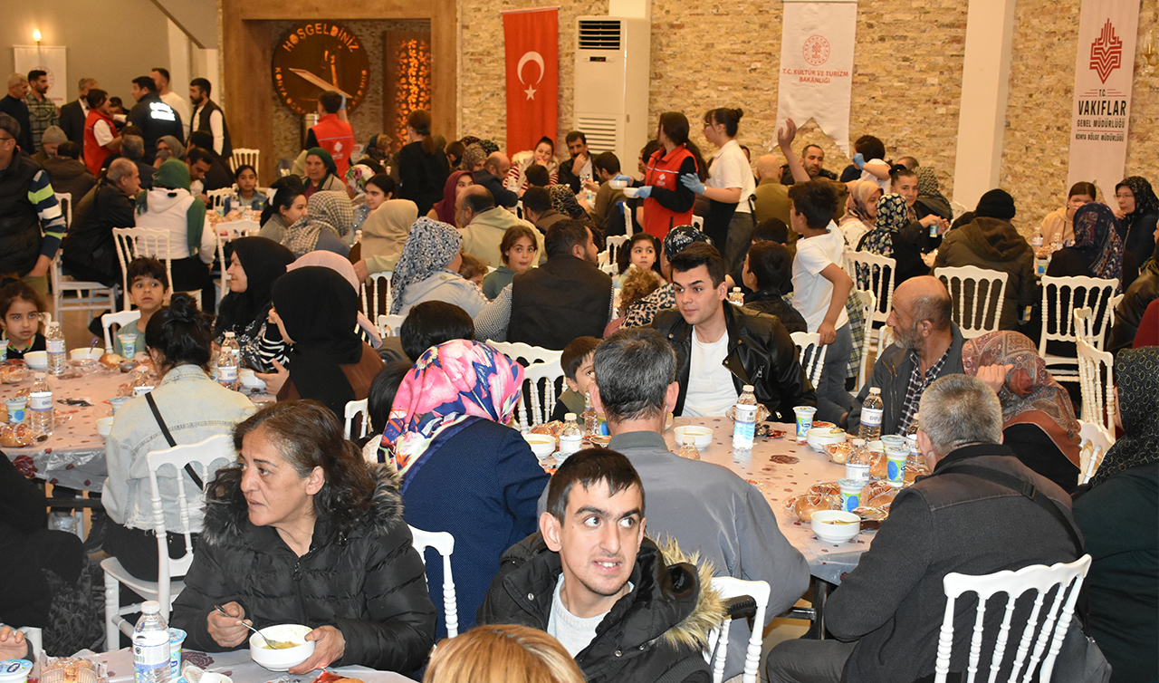 Konya Vakıflar Bölge Müdürlüğünce, "Sofralarımıza Bereket, Gönüllerimize Merhamet" temasıyla, 9 merkezde günlük 3 bin kişiye iftar veriliyor.