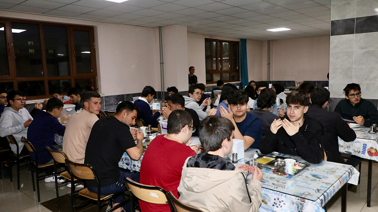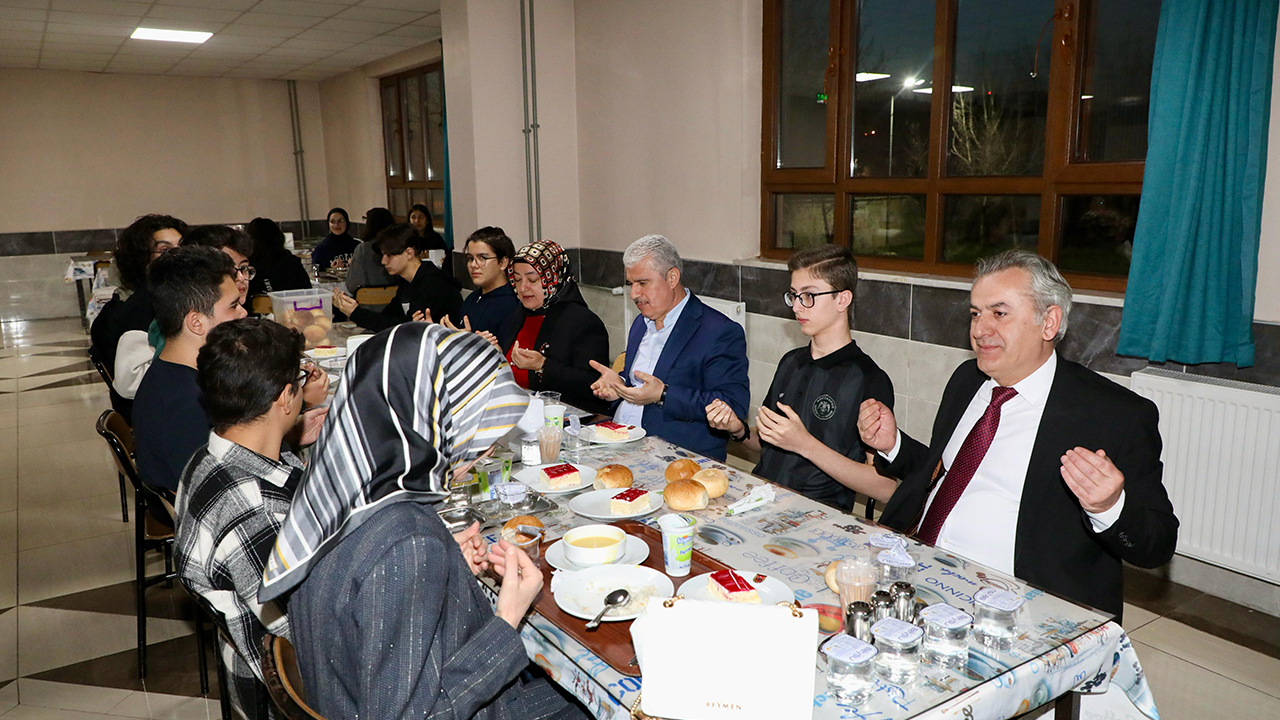 Söyleşi programının ardından Vali İbrahim Akın ve eşi Saliha Akın, Konya İl Milli Eğitim Müdürü Murat Yiğit ve eşi Gülenay Yiğit öğrencilerle iftar açtı.