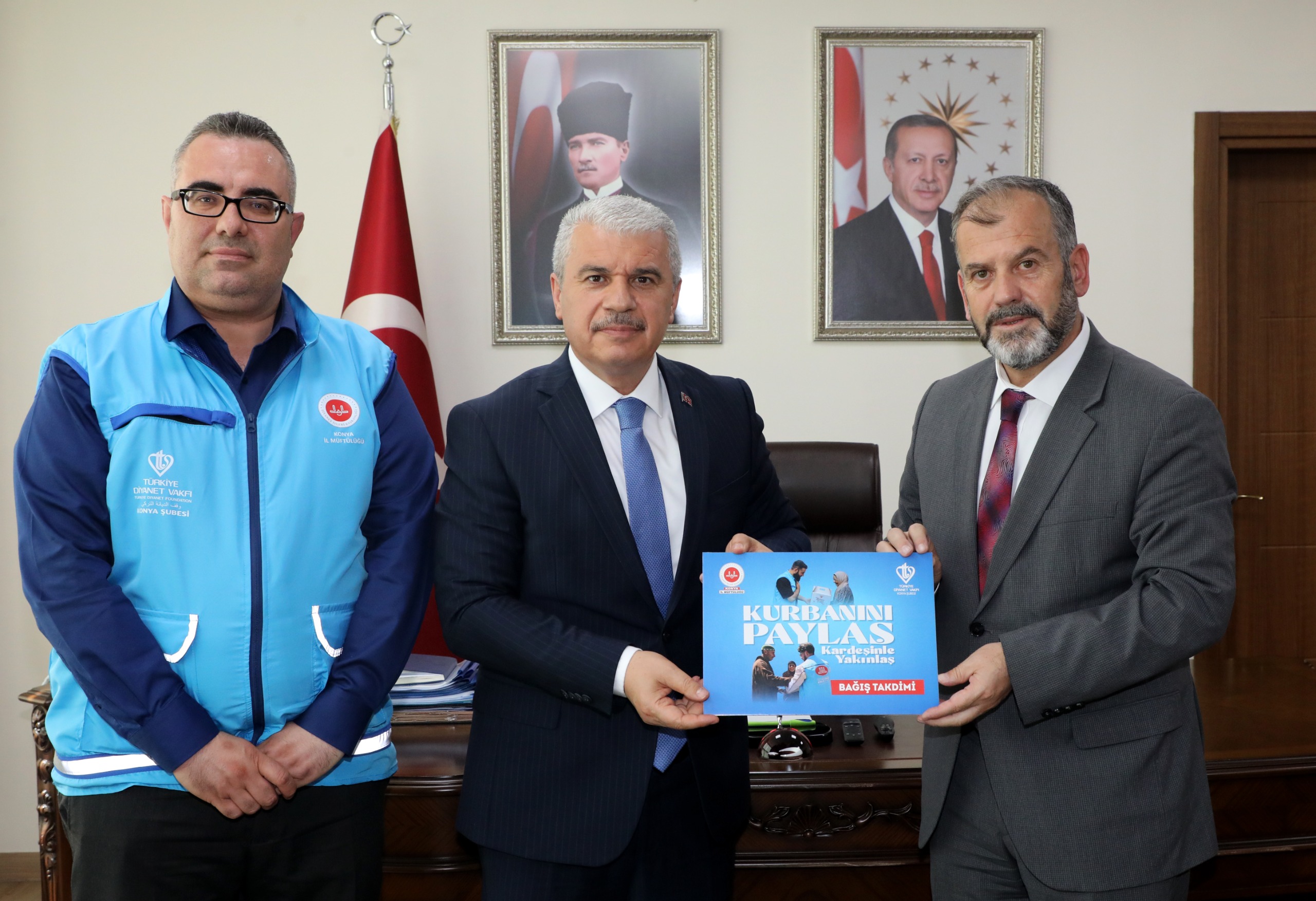 Konya Valisi İbrahim Akın, Diyanet İşleri Başkanlığı ve Türkiye Diyanet Vakfı iş birliğiyle "Kurbanını Paylaş, Kardeşinle Yakınlaş" temasıyla gerçekleştirilen organizasyonda vekâletle kurban bağışında bulundu.