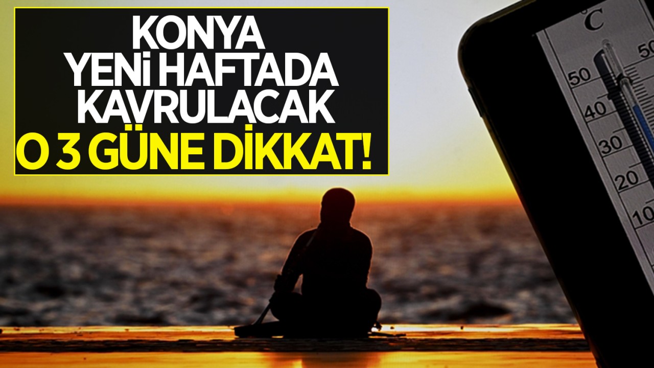 Kurban Bayramı tatilinin ardından yeni haftada Konya'da sıcaklıklar mevsim normallerinin üzerinde olacak. Uzmanlar ise aşırı sıcaklardan dolayı özellikle güneş ışınlarının yoğun olduğu saatlerde zorunlu olmadıkça dışarı çıkılmaması konusunda uyarılarda bulundu.