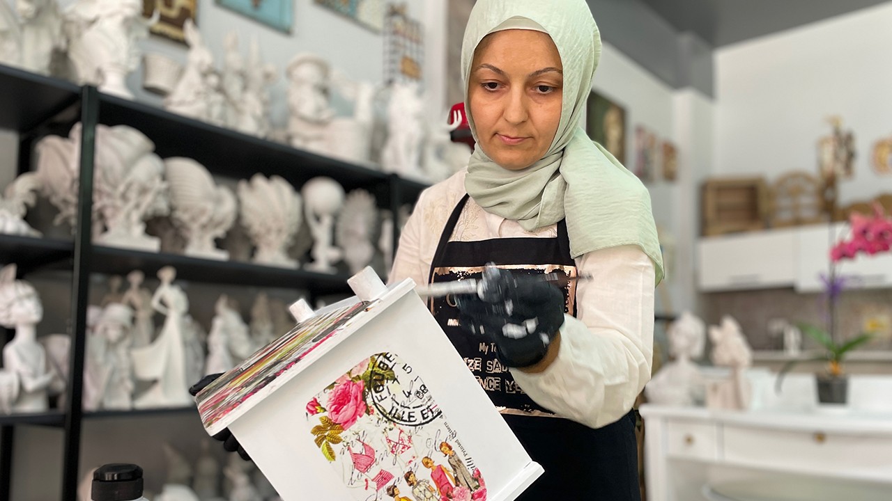Konya'nın Akşehir ilçesinde yaşayan Aynur Aydın, salgın sürecinde katıldığı kurslarda aldığı eğitimle dekoratif boyama sanatında usta öğretici oldu.