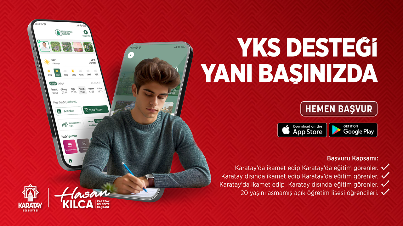 Destekten Karatay’daki bütün lise 12. sınıf öğrencileri, Karatay’da ikamet edip farklı il veya ilçede eğitim gören bütün lise 12. sınıf öğrencileri ve 20 yaşını geçmemiş olmak kaydıyla açık öğretim lisesi öğrencileri faydalanabilecek. Destekten faydalanmak isteyen öğrenciler, 1 Mart Cuma günü saat 23:59’a kadar Karatay Belediyesi’nin Yanıbaşımda Karatay mobil uygulamasına başvurularını yaptırabilecekler.