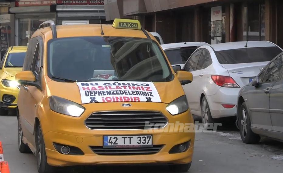 Konya halkı tüm Türkiye’de olduğu gibi depremin yaralarını sarmak için tek yürek oldu. Yardım çağrılarına taksicilerde katıldı. Hasan Özkilis iki günlük taksi gelirinin tamamını depremzede ailelere bağışlayacağını açıkadı.