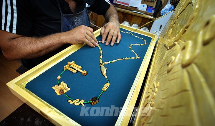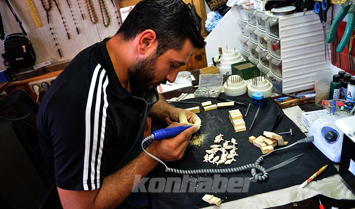 Konyalı tespih nakkaşı Ahmet Bozkurt Savanç, Kral Nemrud'un İbrahim peygamberi ateşe atmasıyla oluştuğuna inanılan Şanlıurfa'daki Balıklı Göl'ün hikayesini tespihe nakşetti.