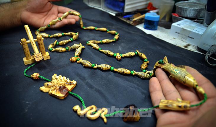 Savanç, bölgeden getirdiği iğde ağacından 6 ayda el emeğiyle işlediği, zümrüt ve bazı değerli taşlarla bezediği tespihi, koleksiyoncuların beğenisine sundu.