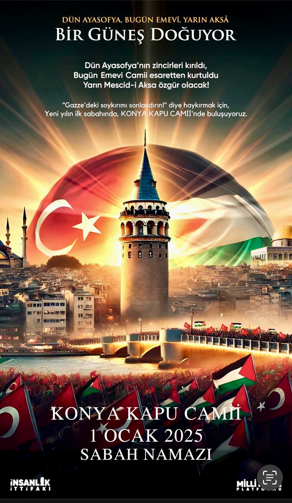 Tesbihat, dua ve ikramların yapılacağı buluşmada Gazze'nin kurtuluşu için bir kez daha tek yürek olunacak. Konya İl Müftüsü Prof. Dr. Ali Öge'nin de katılacağı sabah namazı buluşmasına katılımın yüksek olması bekleniyor. Kapu Camisi'ndeki buluşma, üç ayların karşılandığı günlerde hem milli hem de manevi duyguları harekete geçirecek bir etkinlik olacak.