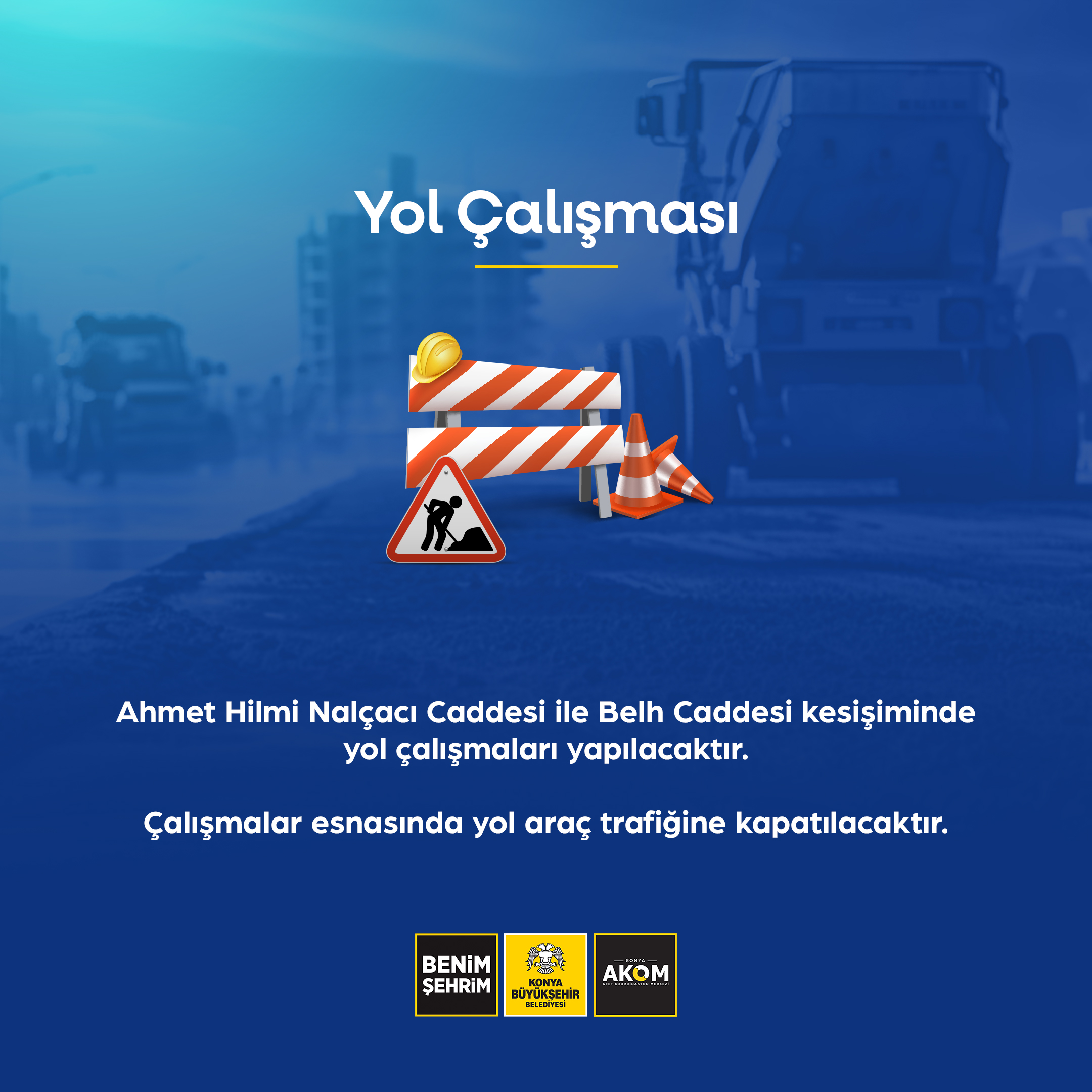 Konya Büyükşehir Belediyesi Afet Koordinasyon Merkezi (AKOM), 15 Mayıs Çarşamba günü 22.00 ile 16 Mayıs Perşembe günü 07.00 saatleri arasında Ahmet Hilmi Nalçacı Caddesi ile Belh Caddesi kesişiminde yol çalışmaları yapılacağını sosyal medya hesabından duyurdu. Çalışmalar esnasında yol araç trafiğine kapatılacağını ve trafiğin alternatif güzergahlardan sağlanacağını aktardı.
