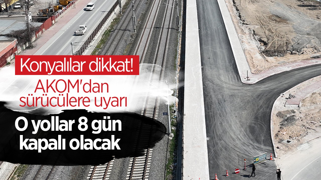 Konya Büyükşehir Belediyesi Afet Koordinasyon Merkezi (AKOM) banliyö hattı çalışmaları kapsamında bazı yolların araç trafiğine kapatılacağını duyurdu.