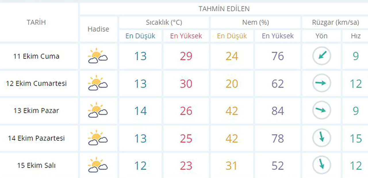 11 Ekim Cuma - Parçalı bulutlu, 29