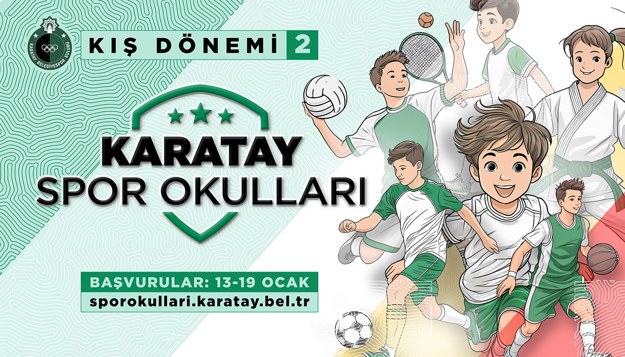 Karatay Kış Spor Okulları’ndan; voleybol, cimnastik, taekwondo, masa tenisi, satranç, yüzme, futbol, basketbol, tenis kortu spor dallarında 2009-2019 yaş aralığındaki çocuklar ve gençler faydalanabilecek. Uzman eğitmenler eşliğinde düzenlenen kurslar, çocuklara hem spor yapma hem de eğlenme fırsatı sunacak.