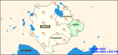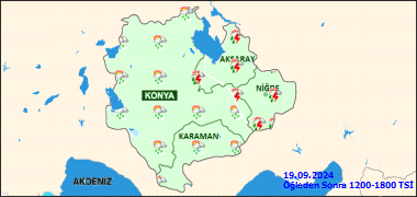 22 Eylül Pazar 2024 Konya hava durumu Gök Gürültülü Sağanak, sıcaklık 19°