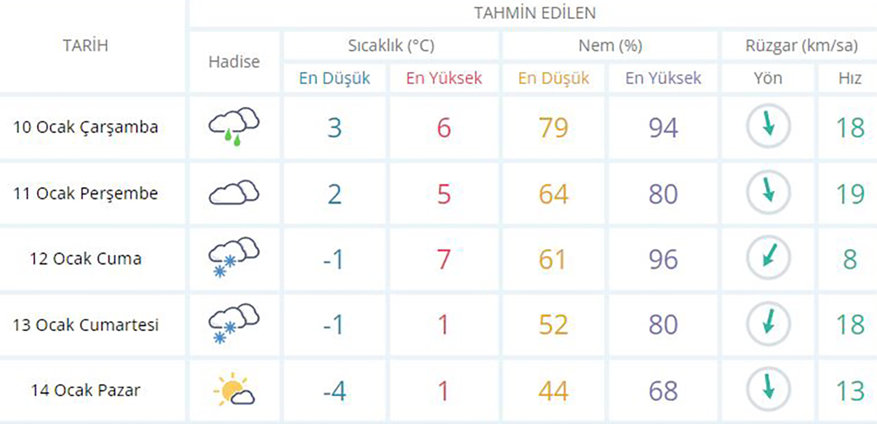 5 günlük hava tahmini