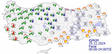 15 Aralık 2024 Pazar Konya hava durumu Yağmurlu, sıcaklık 9°