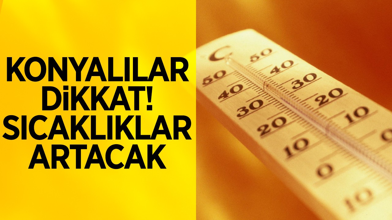 Konya'nın Ahırlı, Akşehir, Çeltik, Cihanbeyli Çumra, Emirgazi, Ereğli, Karapınar, Kulu, Selçuklu ve Yalıhüyük ilçelerinde sıcaklık artacak. Konya'nın 11 ilçesinde termometreler coşuyor. Vatandaşların özellikle öğle saatlerinde dışarıya çıkmamaları önerildi.