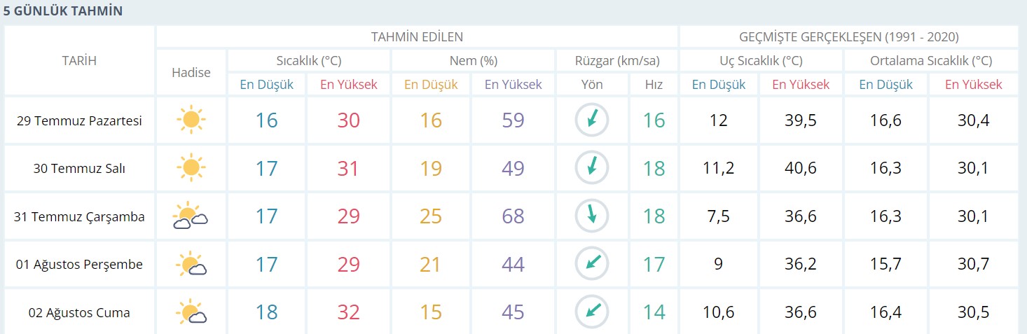 - 31 Temmuz 2024 Çarşamba: Hava durumu az bulutlu, sıcaklık 29°C.