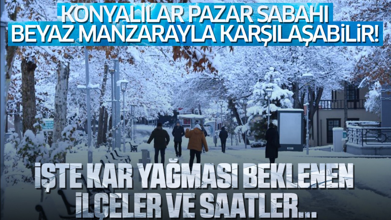 Meteoroloji verilerine göre kar yağışı cumartesiyi pazara bağlayan gece saat 00.00 ila 06.00 aralarında etkisini göstermesi bekleniyor. Öyle ki Konyalılar sabah uyandıklarında beyaz bir manzarayla karşılaşabilir.