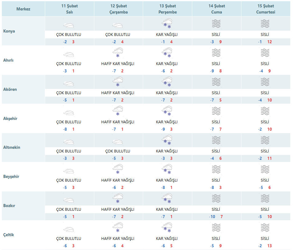KONYA'DA 5 GÜNLÜK HAVA DURUMU