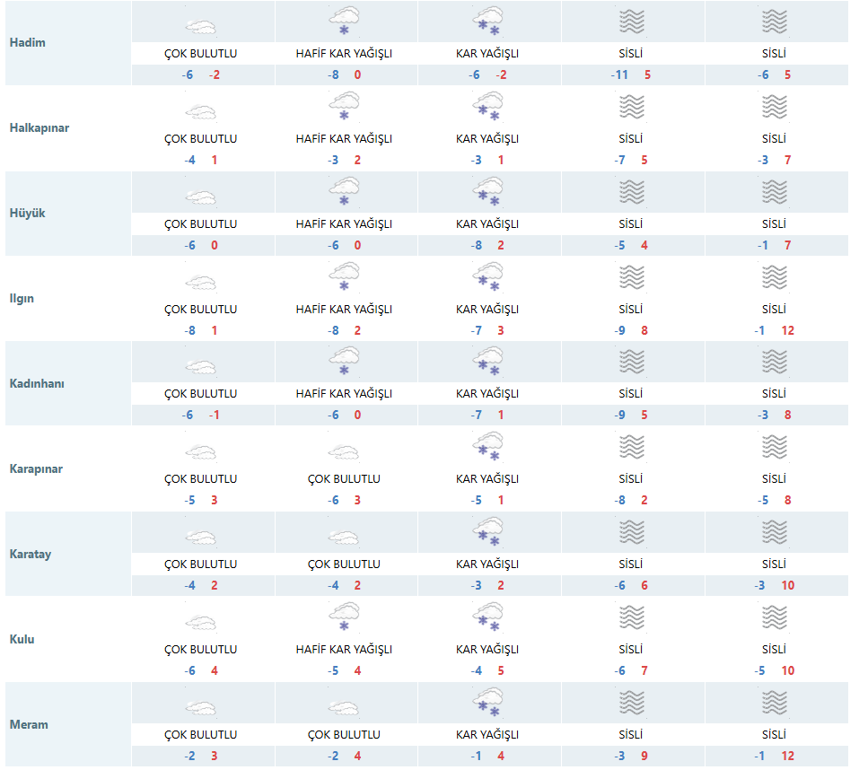 13 Şubat 2025 Perşembe Konya hava durumu Kar Yağışlı, sıcaklık 4°