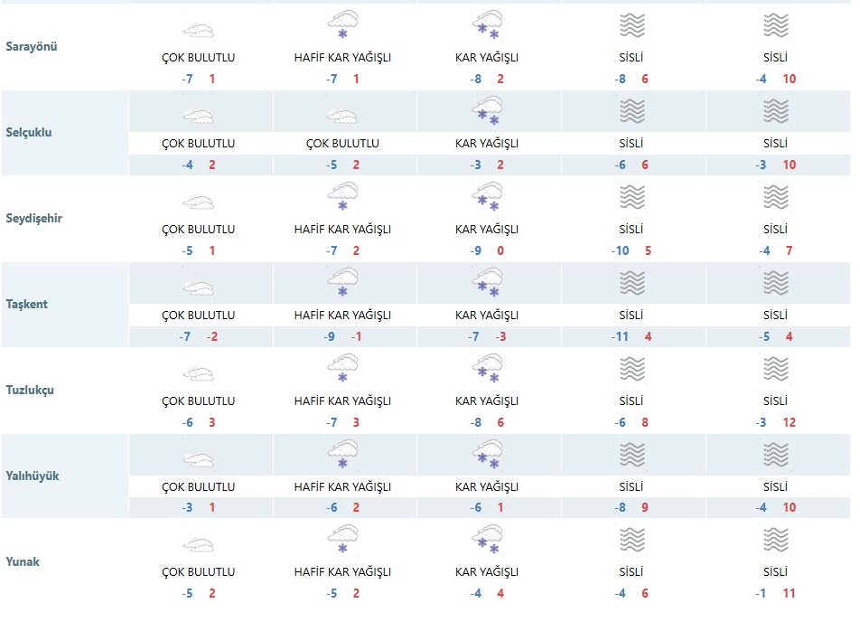 15 Şubat 2025 Cumartesi Konya hava durumu Sisli, sıcaklık 12°(Cansu Ünal)