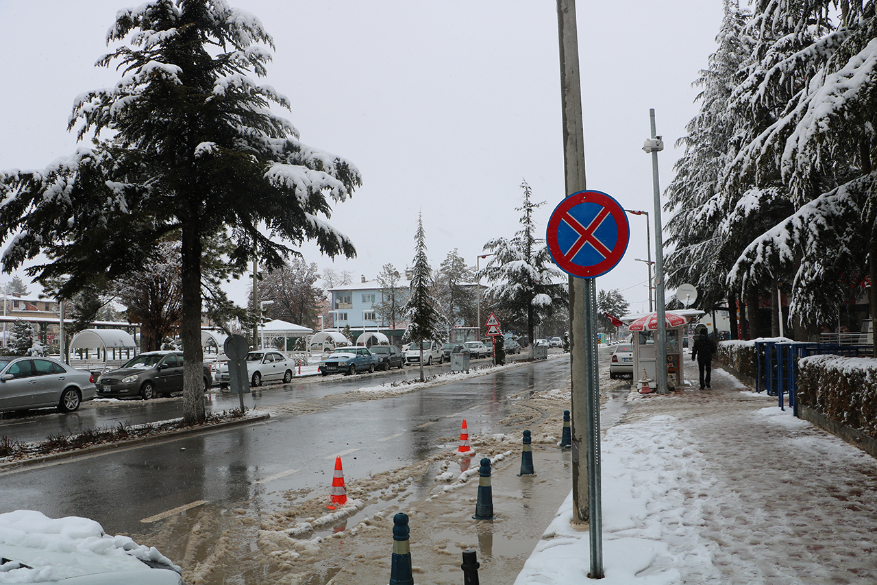 Şehir merkezinde sabah saatlerinde başlayan kar yağışı devam ediyor. İşe ve okula gitmek için evlerinden çıkan vatandaşlar beyaz örtü ile karşılaştı.