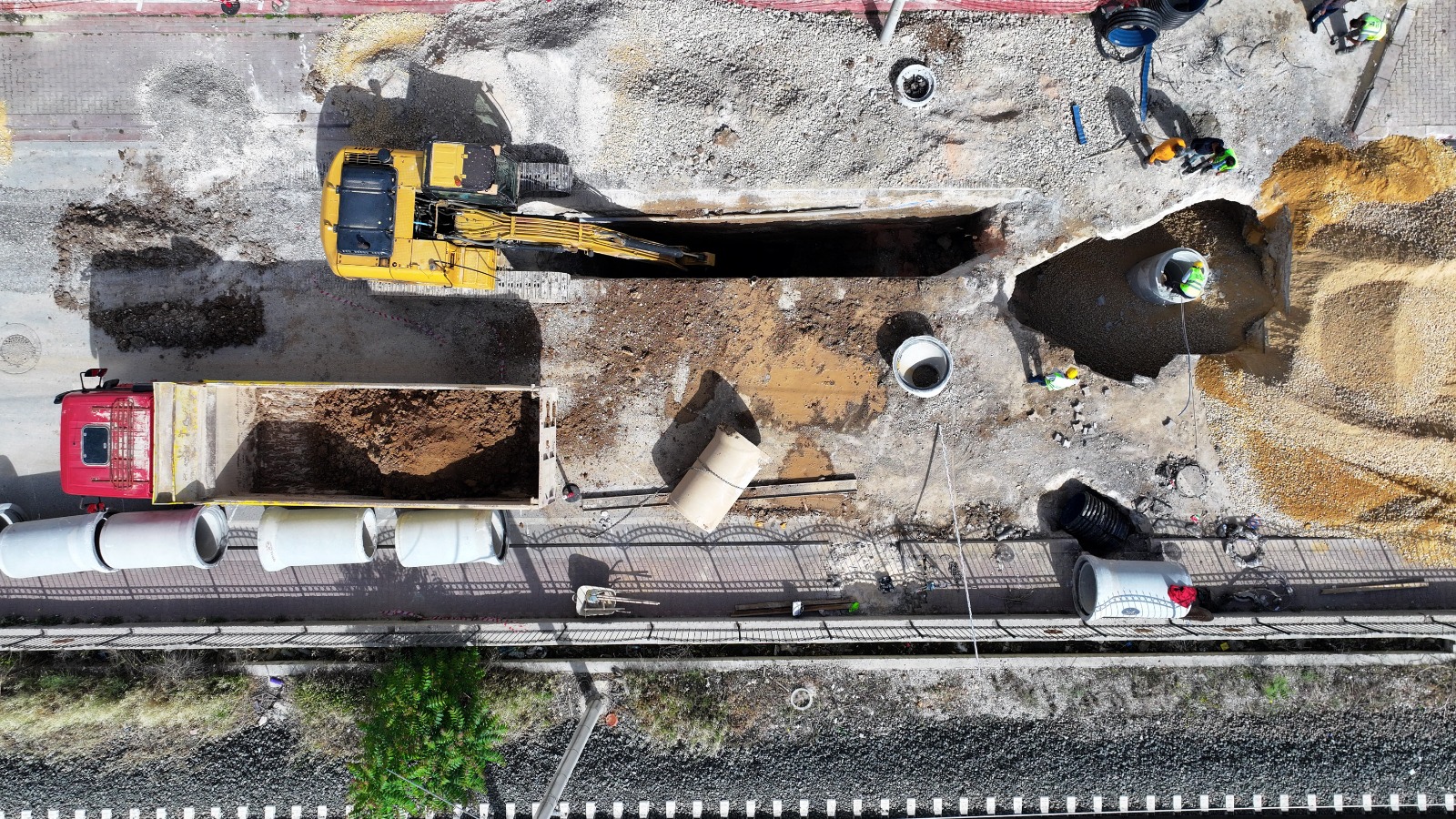 Banliyö Hattı güzergahında yürütülen kanalizasyon şebekesi deplase çalışmaları Işıklar Mahallesi Demiryolu Caddesi, Rauf Denktaş Caddesi ile Eski Sille Caddesi arasında yapılırken; çalışmalarda Q1000 betonarme borularla aktarma yapılıyor.