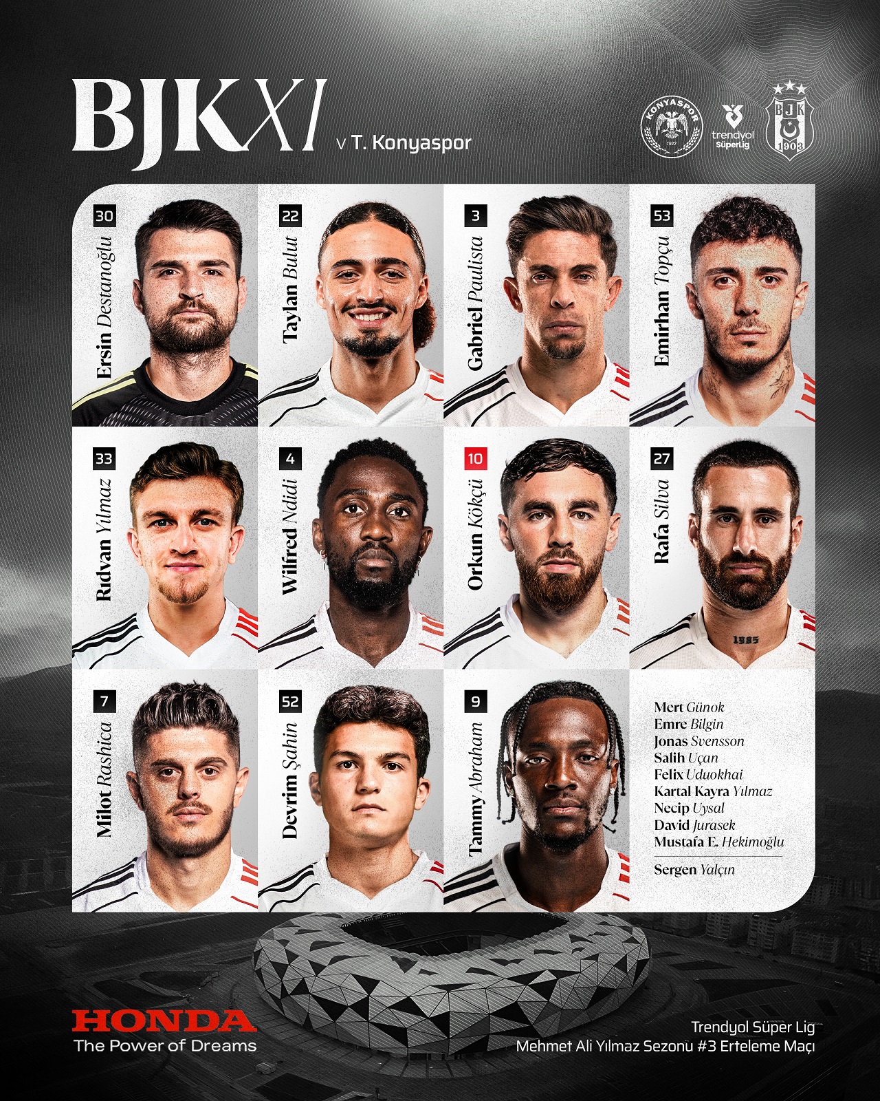 Konyaspor ile Beşiktaş arasında oynanacak karşılaşmayı İstanbul bölgesi hakemlerinden Ozan Ergün yönetecek. Kritik maç öncesinde iki takımın da ilk 11’leri belli oldu.