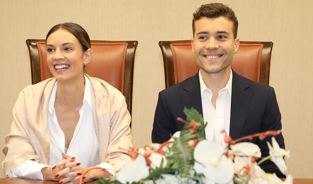 Guilherme ile Maria Eduarda Da Rocha Medeiros'un evlilik yüzüklerini Karatay Belediye Başkanı Hasan Kılca taktı.